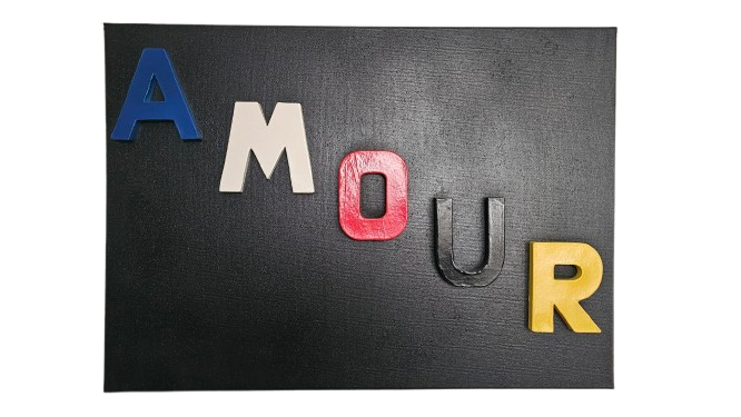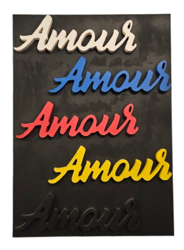 Ici, le message prend corps. Je fusionne la force des couleurs primaires à des mots simples, directs et essentiels. À travers les lettres en relief et le travail des textures, chaque œuvre est une recherche du geste juste — celui qui ne s’encombre pas du superflu. C’est l’expression d’un message brut, visuellement efficace, conçu pour ancrer l’essentiel dans votre espace et transformer la contrainte en une clarté vibrante. »
